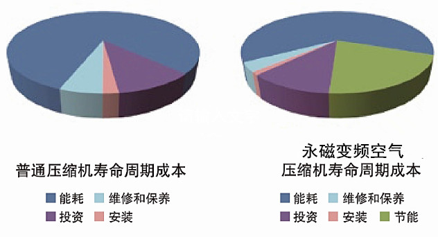 空压机能耗费用一般要占到使用周期整体费用的82%左右,空压机的电费可能高达工厂全部电费的40%以上。长期的跟踪证明,大部分用户的压缩空气需求在不同日期,不同时间或不同月份都有40%-80%的大幅波动。